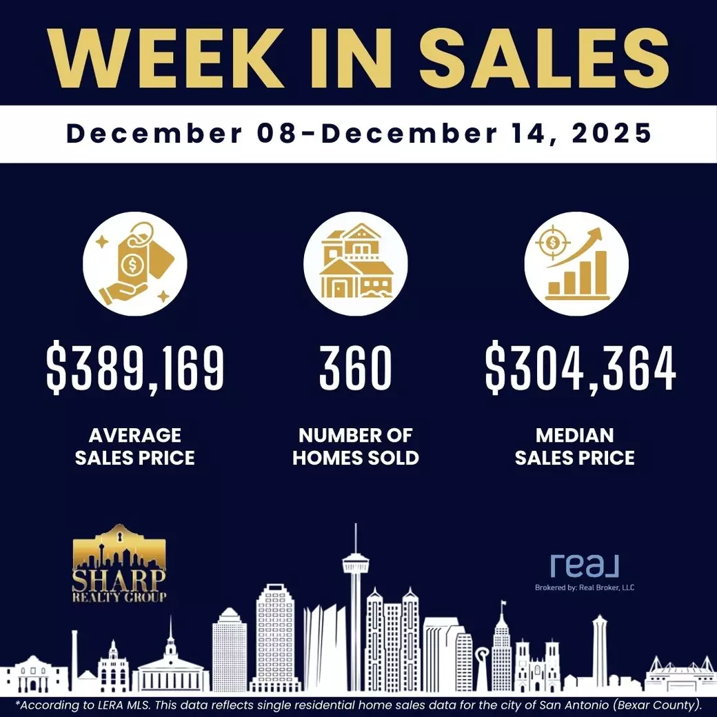 The San Antonio housing market showed notable price appreciation during the week of December 08-December 14, 2025, with average sales prices climbing 19.09% and median prices rising 8.70%.